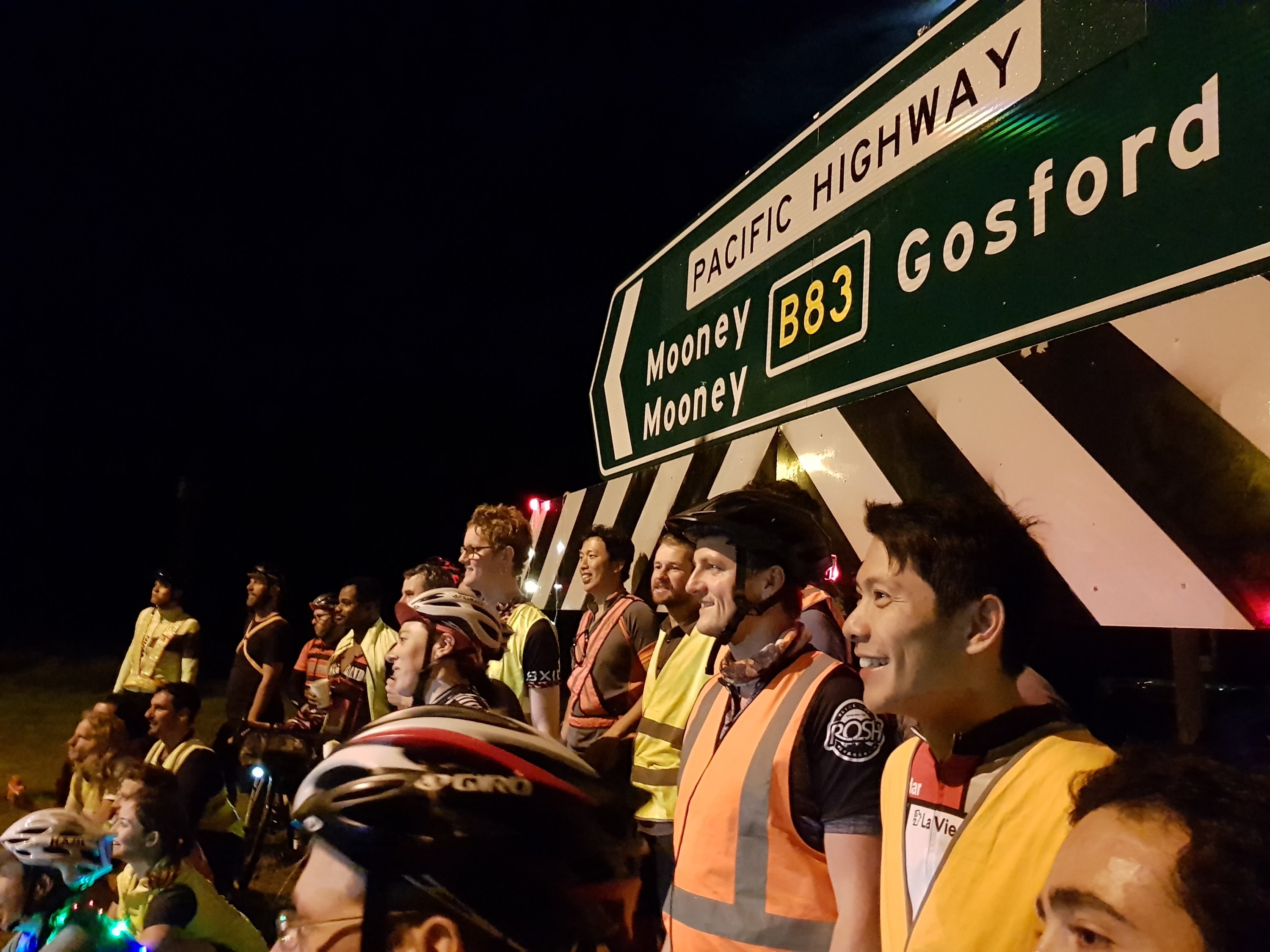 Normally I cycle alone, but this trip caught my attention. A group of about 150 cycling up the main road (not the freeway) from Sydney to Newcastle. To avoid the traffic, they do it at night.