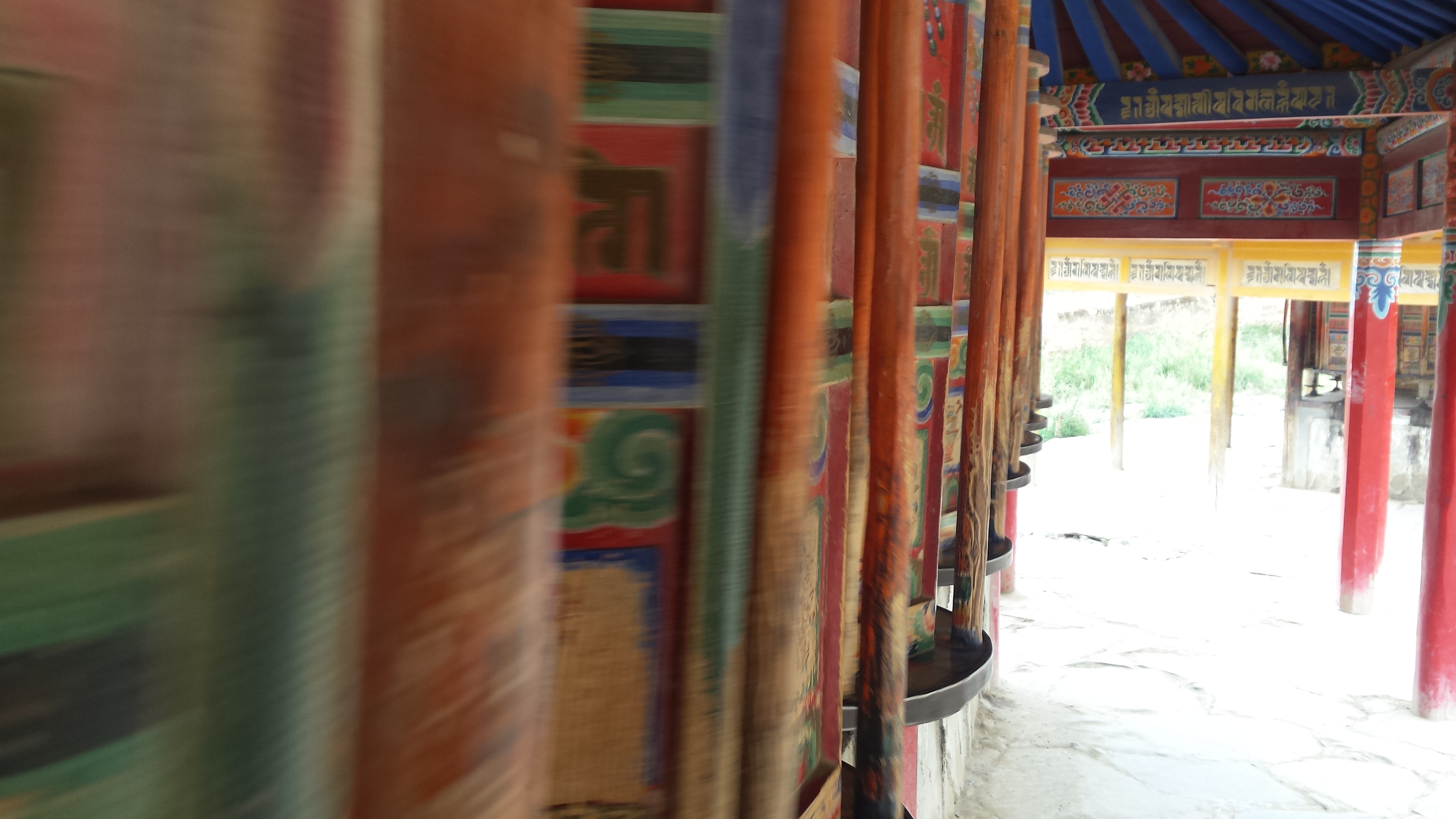 The two young monks in front of us stood then dropped to their knees, then rose again. One was fast, the other (the one we saw yawning) was slower. The fast one was relieved from this praying duty by the head monk. The slower one continued. At six o’ clock in the morning, I am not surprised he was yawning.
