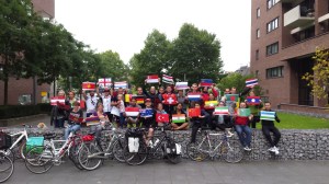 Day 1. 87km. Eindhoven – Schimmert.The day was surreal. Escorted by a mass of friends to the Belgian border, we sat in the sun, fearing the moment of our ways diverging. Then welcomed by more friends on arrival in Schimmert – with the Dutch flag and a glass of champagne. I still haven’t fathomed everything. That will come. |